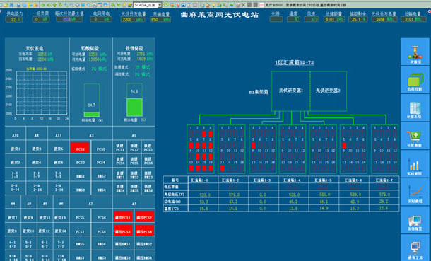 只配置光伏发电和储能系统,不配置柴油发电设备,对光伏电站的启停是一个很大的挑战;县城的总负荷远超预期,白天有光照但不充足时,铁锂储能系统需要频繁转换充放电模式;为解决这些难点,配置微网能源管理系统进行控制和调节。