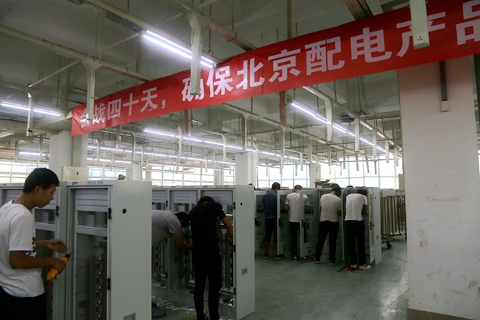 为确保北京配电产品按期发货,公司电装厂、计划调度部、质量评测部联合成立了“北京配网交货项目组”推动四十天大会战。目前新招聘人员培训、工序分解已经结束,大会战顺利展开。过去的一周内已装配、配线完工200台,流水基准已完成,后继产品调试工作将进入24小时工作状态。