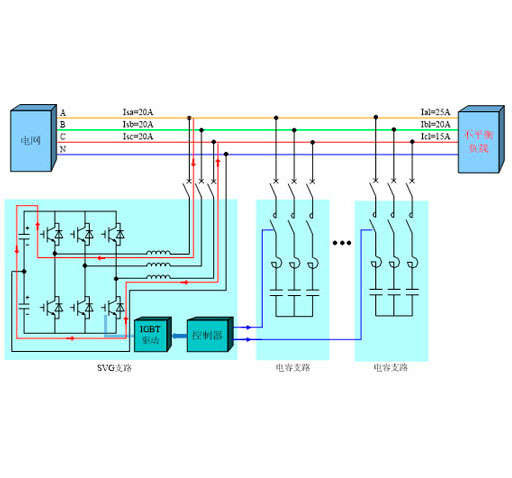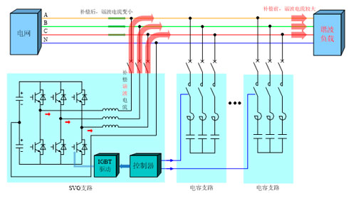 ? 与固定电容器补偿联动,采用SVG的控制器,统一控制电容器的投切,既能减少体积又方便协调控制。