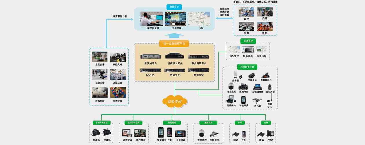 建立统一的音视频应急指挥平台,使各类支撑系统有效互联互通,基于GIS系统,打破信息孤岛,实现应急指挥的“看得见、叫得通、调得动”,确保应急指挥处置快速、及时、高效。